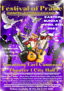 This event is a fundraiser for the Eliza Do Little Society. They seek to bring awareness to the charity as well as the Festival of Praise Concert. This event consists of 15 performers as well as special guest appearances from Bermuda idol 2023 winners. See the poster below: